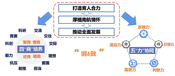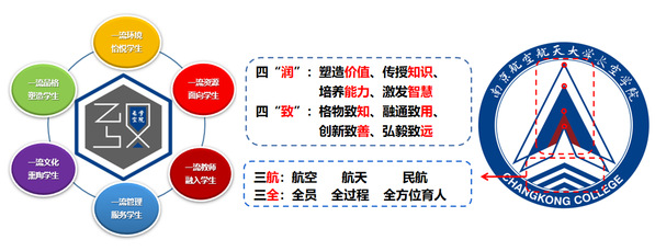 在南航,“长空”是一份荣誉、一种责任,更是一种精神和追求。学院以“长空”命名,凸显我校航空为本、服务三航的办学特色。学院深挖“长空”育人内涵,设计提出“六个一流”的育人定位“四商”培养、“五力”协同的育人目标,凝练出四“润”四“致”的育人理念总结出“有”(有情怀、有担当、有活力、有内涵)五“善”(善于学习、善于思考、善于研究、善于实践、善于创新)的育人追求,形成以“润&致”为核心的学院文化体系。