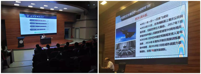 紧接着,方锦星为我们介绍了国内航空的发展动态,全面展示了中国战斗机从一代到四代机的发展历程,并播放了珠海航展歼-20飞机的相关视频。四架歼-20在珠海航展上空以战斗姿态通场、双飞机编队飞行、打开弹仓对外展示,一套战斗动作行云流水、潇洒自如。这一切无一不显示着我国航空领域的先进水平和强大的战斗能力。