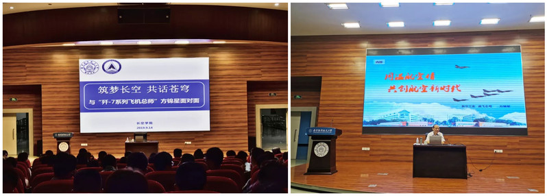 方锦星的讲座从“航空发展新动态”、“制造技术发展动态”、“共创航空新时代——做新时代的好学生”三个篇章入手,逐一展开。首先为我们介绍了当前世界的航空形势,讲述了当今国际形势复杂多变,多个国家政局动荡,领土主权纷争等问题仍然存在。在如此激荡的时代中,我国的航空事业日益腾飞,新军事变革加速演进,尤其是战斗机的换代与升级,大大加强了我国的防卫力量,为保卫我国神圣领土做出了杰出贡献。方锦星在此提出了只有在中国共产党的领导下,坚持社会主义现代化道路,才能在如此严峻的国际形势下谋得发展。同时,方锦星也表达了长空学子遇见了航空航天事业发展的最好时机。