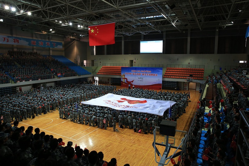 2019年9月18日,为号召新生践行“小我融入大我,青春奉献祖国”的思想,同时以思想指引行动,我校以军训为契机,以唱响红歌军歌为依托,在将军路校区举行了“蓝天放歌”新生军训赛歌会,长空学子以一首《中国军魂》夺得冠军。我院副院长张林莅临会场,与我院720余名新生一同见证了这个激动人心的时刻。