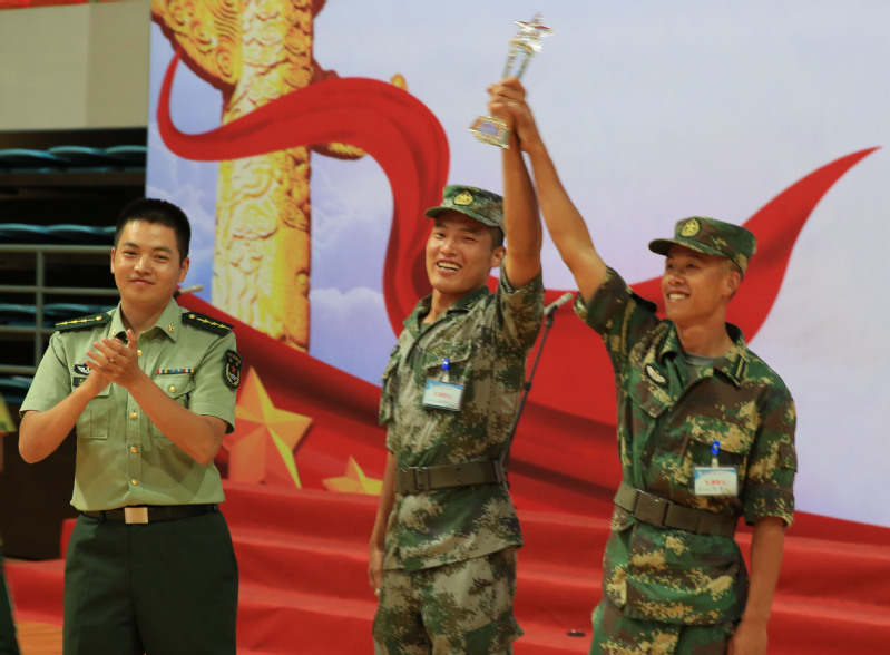 在我院营长接到奖杯的一刻,台上台下瞬时成了一片欢乐的海洋,欢呼、拥抱、流泪,长空学子挥洒着自己的汗水与青春。一曲《中国军魂》唱出了长空学子的心声,更唱出了长空学子的气魄,青春本该如此,投身于集体,奉献于国家!相信我院一定会以更强的凝聚力、更足的精气神面对未来的挑战!