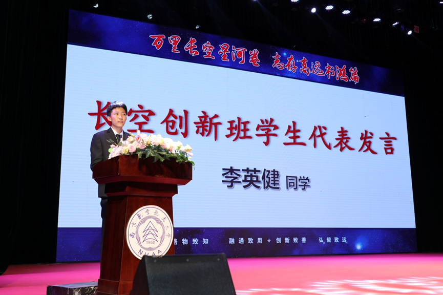 在开展航空航天大类培养改革的同时,pg游戏电子模拟器也扎实推进拔尖创新人才培养模式改革,“长空创新班”由此应运而生。826名学生申请,历时两月,多轮选拔,无数个“长空十二时辰”,60名南航新生以优秀的综合素质成功入选,成为首届“长空创新班”学生。李英健同学代表长空创新班首届学生发表感言。
