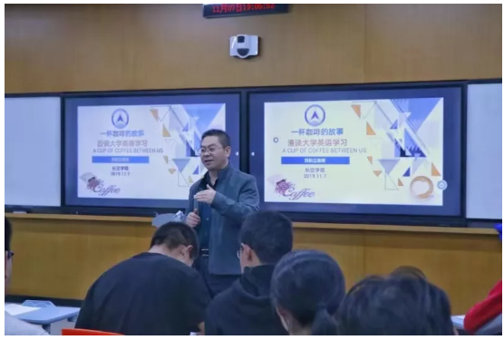 11月7日晚,“一杯咖啡的故事”系列活动之“漫谈大学英语学习”主题交流顺利开展。外国语学院副院长刘长江老师与pg游戏电子模拟器近五十名学生相聚于7407智慧教室,共同探讨大学英语的“学习秘籍”。在长达三个小时的交流中,刘老师幽默风趣、热情激昂的讲解将同学们完全带入其中。教室里欢声笑语不断,大家在轻松愉悦的氛围中获得了许多宝贵的学习经验,明确了大学英语学习的定位。