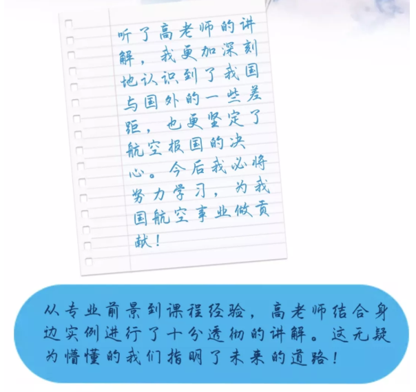 A4:从工作强度上来说,航空航天方面的工作强度肯定是比不上IT行业的,薪资比起IT行业也稍低一些,但同学们始终要把家国情怀作为自己学习和工作的动力。大家以后要从事的工作都是为国家和人民服务的,航空航天事业也是国防事业的重要组成部分,而正是中国国防事业的强大才保障了国家的和平和社会的安定,保障了其他行业的蓬勃发展。