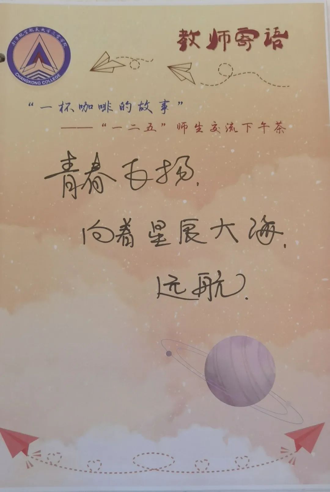 最后,孙院长向大家表达了他的期盼与嘱托。孙院长表示学习就像飞机起飞的过程,起飞前的“加速”是艰难的、充满挑战的,起飞后,“对流层”的攀升过程也夹杂着碰撞和冲突,但只要我们坚持下来,到达“平流层”,事情总会变得顺利。孙院长希望同学们将此时此刻做为一个起飞点,顺顺利利飞离南航,飞得越来越高!
