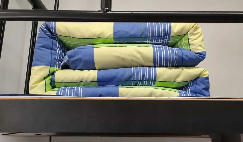 军事训练不仅仅是为了提高素质,更是为了让同学们养成良好的习惯。整洁的桌面,方正的被褥,是对每一个学子最基本的要求。这不,教官正用一张纸指导同学们如何叠出标准的“豆腐块”,大家都聚精会神地听着,迫不及待地准备对自己的被褥大展身手。