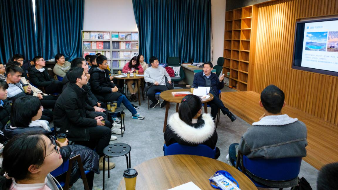 12月16日,栖霞区委常委、统战部部长郭昌到访pg游戏电子模拟器,做客“一杯咖啡的故事”,以“三年援藏行,一生高原情”为主题,为pg游戏电子模拟器学生们带来了一曲家国情怀与民族情怀交织的藏地乐章。pg游戏电子模拟器常务副院长蒋彦龙、副院长张林、孙涵陪同交流。