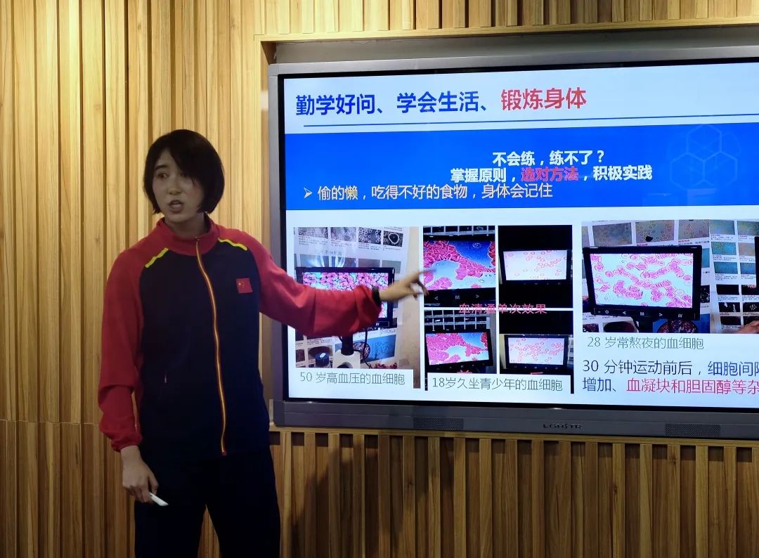 听完张老师的讲解后,发现运动对于身心健康十分重要。这次的交流分享也让我了解了许多日常锻炼的小技巧和饮食的奥秘,收获满满。以后要不断为自己积累“财富”——好身体!