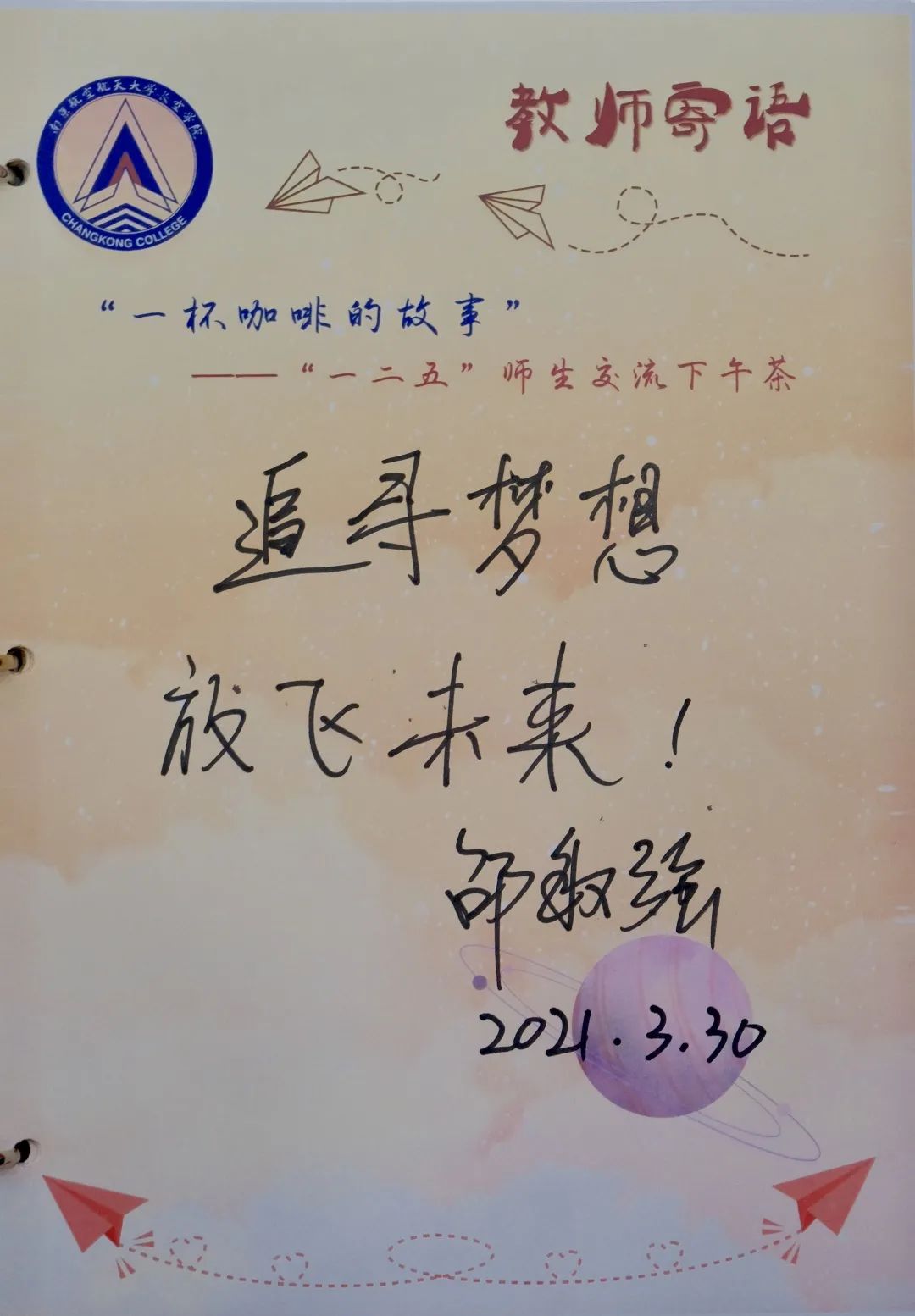 3月30日下午,pg游戏电子模拟器振动工程研究所副教授邵敏强老师做客“一杯咖啡的故事"系列活动。邵老师围绕南航振动工程研究所发展历程、个人专业研究方向和大学生自我价值实现等主题与同学们展开交流,勉励大家不断学习、积极创新。