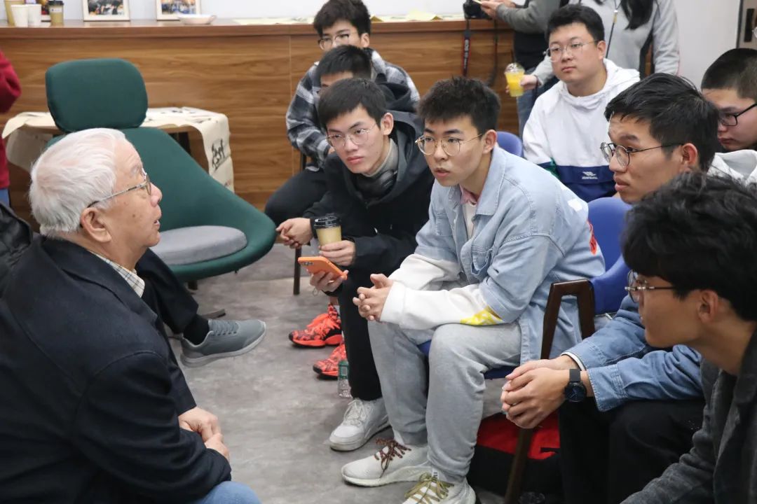 姚协乘老先生向同学们介绍了不忘初心、坚持创作的历程。姚老回忆了自己在新疆参与建设时的组织生活,人们乐于互相批评、互相建议,人人愿意为党、为国家奉献一切的往事,指出“初心就是为人民服务,唯有不忘初心,养成严于律己、乐于接受意见、为人民服务的品行,才能得到有意义、有价值的人生”。