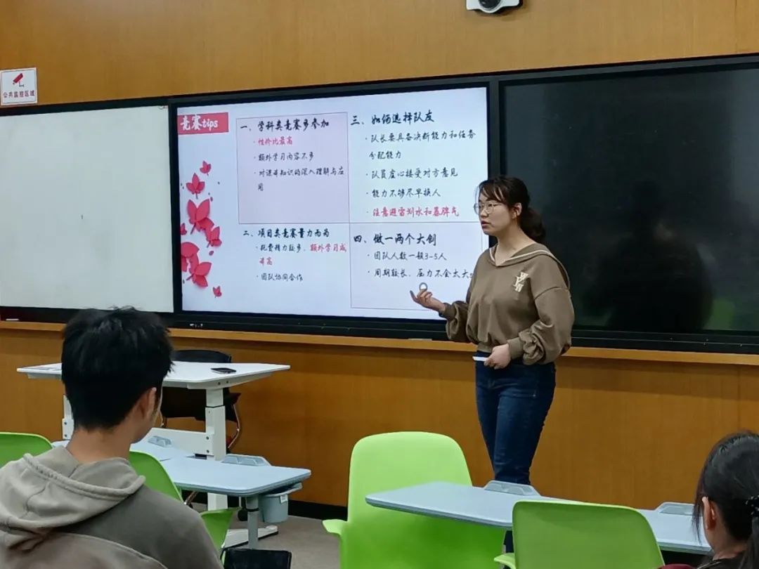 王樱学姐表示对大一的学生来说,参加竞赛的机会很多,但同时课程也很多,要学会有所取舍。学有余力的同学可以选择一些感兴趣的竞赛参加,而如果希望通过竞赛提升自己竞争力,那就需要尽量选取认可度更高的赛事。