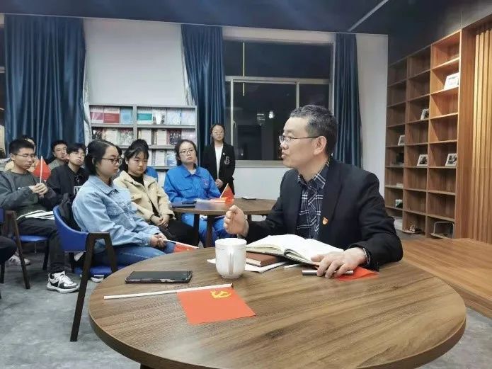 蒋院长在参加团课过程中对同学们的发言频频点头,给予了充分肯定。同时他也表达了参加此次“党史课堂”的感悟和体会,并表达了对同学们的真挚期望。蒋院长指出,学习党史的目的不是为了从成功中寻求慰藉,为回避今天面临的困难和问题寻找借口,而是为了总结历史经验、把握历史规律,寻找一种力量与信心,以便更好地前行。朗诵绝笔信这样的形式很好,但是不能止于表面,像同学们今天这样联系生活实际深入思考就很好,我们需要做到回看走过的路、比较别人的路、远眺前行的路,只有了解历史才能看的远。