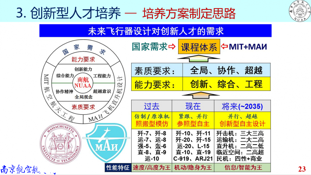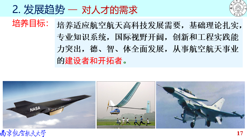 A:从飞设专业的知识体系来说,这三方面都同等重要。从学生学习角度来说,本科阶段三个方面都要学习和掌握,但是到硕博阶段时,由于研究方向更加精、深,更注重个人的科研能力培养,所要求的知识面实际上并没有本科时全面。我们常常说飞行器总设计师是搞平衡的专家,这就要说到飞设专业人才培养的三大能力:创新能力、综合能力、工程能力,其中综合能力就是协调和平衡能力,总设计师便是要从众多想法中综合组织出一个最合适的方案。