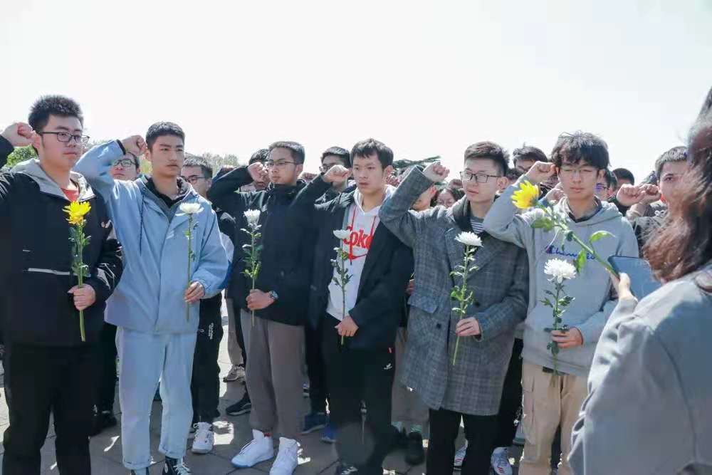 巩固学习了相关历史知识,满怀着对烈士的景仰之情,沿台阶拾级而上,与1820115班支部进行联合扫墓。首先,由韦雨辰同学带领大家念悼词、做宣誓。