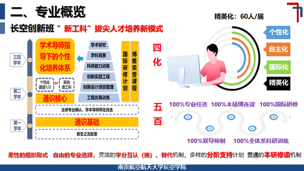 随后,蒋彦龙对pg游戏电子模拟器的培养特色进行了解读,航空航天大类培养和长空创新班的精英培养“双轨并进”、“相时而动”。航空航天类专业实施以突出数理基础、突出自主学习、突出核心课程、突出工程实践的 “四突出”培养体系,具有“厚基础”、“宽口径”、“显特色”、“强交叉”的显著特点,同时以航空航天类AI复合班培养适应航空航天和人工智能融合发展需要的复合型创新人才;作为拔尖创新人才培养的南航方案,长空创新班实行个性化、自主化、国际化、精英化的 “四化”培养模式,致力于培养具有家国情怀、使命担当、引领未来的高素质创新领军人才。