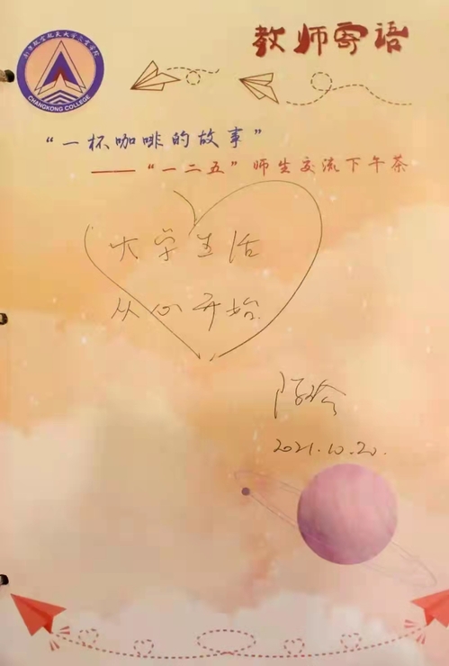 10月20日下午,南京大学社会学院心理系博士、我校心理健康教育中心陈瑜老师做客pg游戏电子模拟器“一杯咖啡的故事”,与长空学子就心理健康进行了一场温馨而愉悦的面对面交流。