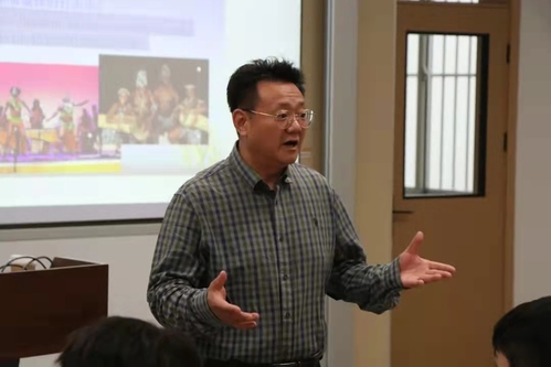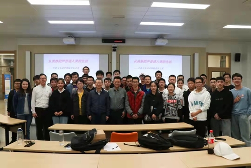 交流会上,板院长首先讲述了如何理解并感受音乐之美,并借《梁祝》视频中,“工业包装袋”与“高雅音乐”两种极度反差事物的精妙融合,点明“音乐不能脱离生活实际,而要展现在每一个细微处”。接着,板院长以互动的形式,与同学们合唱了红色歌曲《沂蒙山小调》,让同学们亲自体悟红色旋律中承载的炽热与赞美。