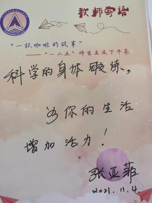 11月4日下午,pg游戏电子模拟器体育部教师张亚菲做客“一杯咖啡的故事”系列活动。从为何锻炼、如何锻炼两方面,张老师与在场的同学们亲切交流,勉励大家通过高效专业的锻炼为生命活力保驾护航,养成积极锻炼的好习惯。