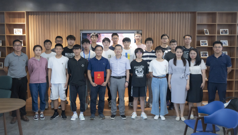 最后,蒋彦龙院长为黄兵颁发家校辅导员聘书,并与全体同学合影留念。蒋彦龙表示,同学们在学习中要尽力达到期望,避免做到近似完成——失之毫厘,差之千里。黄兵也留下寄语,祝愿同学们坚定报国之志,收获幸福人生。