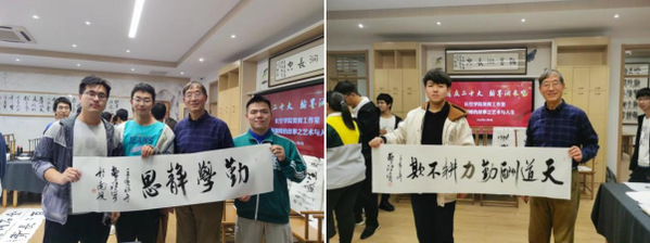 “扶摇直上九万里”“天道酬勤”“青年强,则国家强”,费祖宁现场题字赠与长空学子,勉励学生树立远大理想,发扬实干精神,锤炼品德修为,牢记习总书记在党的二十大报告中对广大青年提出殷切期望,以“咬定青山不放松”的执着担当作为,积极面对学习和生活中的困难。同时,作为当代青年应更加关注中华优秀传统文化,实现自身全面发展。