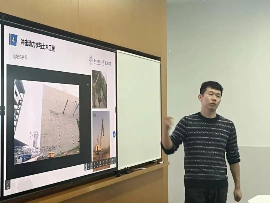 高老师首先介绍了冲击动力学的概念,并指出本门学科的核心理论是牛顿第二定律。接着,高老师从自然界中的冲击现象、冲击力学与航空航天、冲击力学与土木工程、冲击力学与机械工程等多个方面,向同学们展示了冲击动力学在生活和工程中的广泛应用。