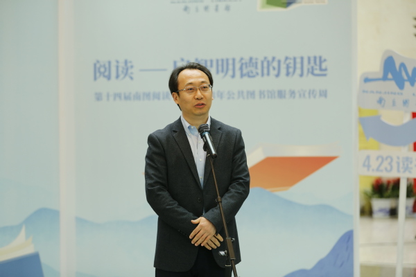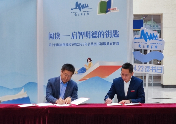4月23日上午,第十四届南图阅读节暨2023年公共图书馆服务宣传周活动开幕式在南京图书馆一楼大厅举行。pg游戏电子模拟器副院长张林、院长助理王瑞瑒出席开幕式,并与南京图书馆签署合作共建协议书。