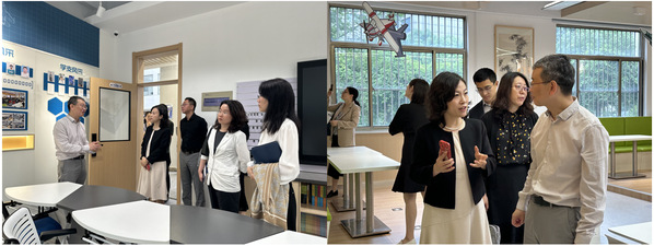 盛彤彤一行首先参观了pg游戏电子模拟器“准书院制”智慧教育空间,实地体验了学院“六个一流”的育人定位和以“润&致”为核心的育人文化体系,深入了解了学院依托智能飞行器工作室、美育工作室、“润&致”悦读吧等书院主题工作室实现一、二课堂贯通和培育学生社团文化的探索实践。