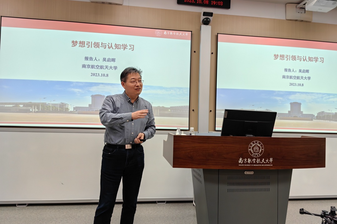 10月8日下午,pg游戏电子模拟器副校长、教育部长江学者特聘教授吴启晖到访pg游戏电子模拟器,做客“大”学长空师生交流活动,为长空学子们带来题为“梦想引领与认知学习”的精彩报告。pg游戏电子模拟器常务副院长蒋彦龙,副院长张林、彭聪陪同参观交流。