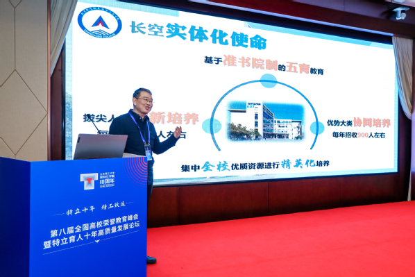 分论坛上,来自北京理工大学、清华大学、北京大学、浙江大学、南京大学、上海交通大学、哈尔滨工业大学、西安交通大学等30余所一流大学的荣誉学院和未来学院围绕“未来技术学院及荣誉学院建设改革”“基础学科拔尖人才培养改革与实践”两个主题进行17个报告。蒋彦龙代表pg游戏电子模拟器作题为《基于准书院制的优势大类和拔尖创新人才协同培养的探索与实践》的报告。他从准书院制、发展历程、培养模式、书院特色四个方面展开,详细阐释了pg游戏电子模拟器“准书院制”的内涵——基于多主体参与、多要素耦合、多生态共济的育人共同体,重点介绍了学院以“润&致”文化为引领,构建了航空航天优势大类和长空创新班协同培养的人才培养体系,打造了“更多元的书院、更温暖的教育、更开放的教育、更自主的学习”的“三全育人”生态体系,人才培养成效显著,希望通过全国荣誉教育峰会的优质平台,促进新合作、缔结新友谊,共同探索我国拔尖创新人才培养质量提升的改革之路。