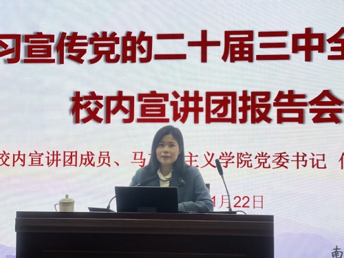 报告会上,何畏教授以《深入学习贯彻党的二十届三中全会精神》为主题,从全会的重大意义、全会的主题,进一步全面深化改革的重要性和必要性、重大原则、重大举措等方面深入解读了全会公报中的关键要点。她结合当前国内外形势,指出进一步全面深化改革,用完善的制度防范化解风险、有效应对挑战,在危机中育新机,于变局中开新局,才能在日趋激烈的国际竞争中赢得战略主动。她强调,坚持以制度建设为主线是新时代全面深化改革的鲜明特点,必须科学认识“破”与“立”的辩证关系,做到破立并举、先立后破。她结合实际案例,生动阐述了如何将党的二十届三中全会精神融入日常学习和工作中,鼓励大家积极践行新发展理念,勇担时代赋予的使命。